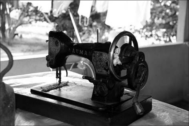 Vava: Isso aí é maquina tocada à mão. Máquina de costurar.