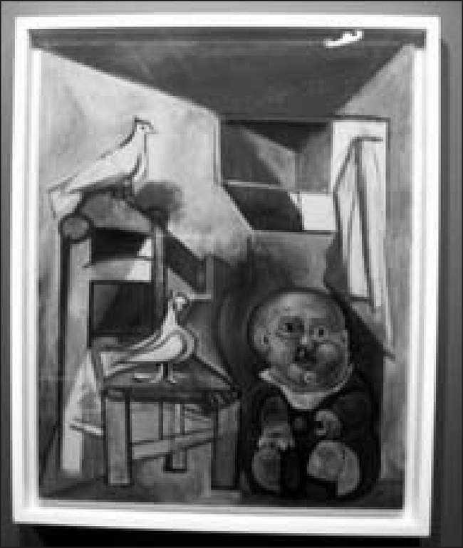 Durante o período de observação, foram presenciados outros momentos nos quais as interações - conversas, sorrisos e trocas de olhares - demostravam envolvimento com as obras em exposição. Por vezes, as obras observadas pelas crianças desviavam do que, a princípio, se poderia julgar como atrativas para o olhar infantil. Em um dos encontros realizados na exposição Picasso: mão erudita, olhar selvagem, os educadores convidaram o grupo a conhecer outra parte da exposição. A educadora consultora destacou que nessa sala “tem umas corujas que achamos que eles vão gostar”. A visita nessa parte da exposição foi bem mais rápida, porém os pais estavam interessados, olhando os ensaios para a obra Guernica, entre outras imagens. Essa parte da produção do artista tem uma paleta bastante escura e, talvez, esse seja o motivo pelo qual os educadores tenham indicado as corujas como peças de potencial interesse das crianças. Mas, contrariando essas expectativas, foi possível ver um bebê apontando os quadros e seus acompanhantes conversando com eles, outro bebê se fixou na pintura L’enfant aux colombes (1943), por exemplo. Tais momentos indicam que a interação direta com o acervo - ou seja, sem os materiais e objetos selecionados pelos educadores - também pode acontecer contando com uma atenção compartilhada.