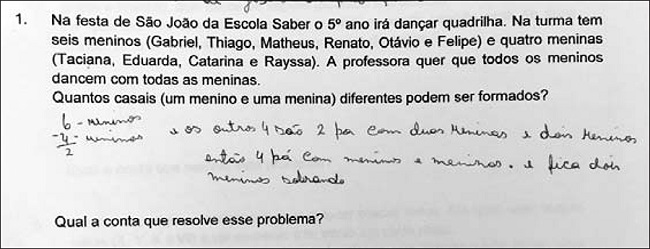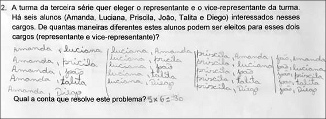 Diferentes autores (Guirado; Cardoso, 2007; Pessoa; Borba, 2009; Azevedo; Borba, 2013) defendem que já nos anos iniciais do Ensino Fundamental, se faz necessário que os professores trabalhem com seus alunos situações que exijam o raciocínio combinatório, de modo que se possa desenvolver formas de pensar sistemáticas e generalizadas na enumeração de elementos combinados entre si.