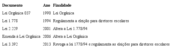 A Lei 3.392/2013, embora seja a lei mais atual e em vigor, trouxe poucas alterações no que diz respeito à forma do texto em relação à lei de 1994. Ela confere, contudo, poder de decisão “[...] aos professores e especialistas em educação” na definição do processo eleitoral, estabelecendo que todos os professores têm direito a voto e incluindo uma nova categoria profissional no processo de eleição: o especialista em educação, que não deixa de ser professor, dada a sua formação. A lei restringe o voto estudantil quando determina que apenas os alunos do Ensino Fundamental, um por classe, podem votar, excluindo os estudantes das turmas de Educação Infantil, e retira ainda a possibilidade de mais um voto dos estudantes ao excluir do texto da lei a representação do grêmio estudantil.