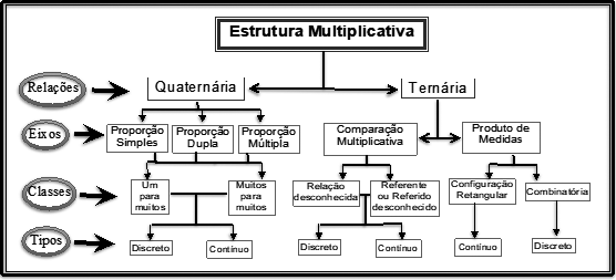 As estruturas multiplicativas referem-se a um conjunto de situações, que abarcam as operações de multiplicação e de divisão, ou a combinação de ambas, que envolvem conceitos e teoremas que permitem analisar tais situações. Entre vários conceitos presentes nesse campo, podemos destacar: razão, proporção, fração, divisor, múltiplos, número racional, funções lineares e n-lineares, espaço vetorial e análise dimensional (Vergnaud, 1983; 1988).