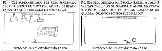 Do ponto de vista amostral, o recorte do estudo envolveu uma população de 483 estudantes, de ambos os sexos, cursando os primeiros três anos do Ensino Fundamental de quatro escolas públicas da cidade de Recife, as quais foram participantes do projeto E-Mult, financiado pela CAPES, no âmbito do Edital Observatório da Educação. Desse quantitativo, foram selecionados apenas os estudantes que acertaram, pelo menos, um dos seis problemas presentes no Quadro 2. A partir dessa condição, restaram 182 estudantes, sendo 22 do 1o ano, 45 do 2o ano e 115 estudantes do 3o ano.