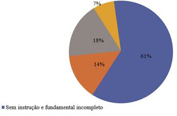 Em 2010, a população brasileira com 15 ou mais anos de idade com ao menos uma das deficiências investigadas pelo IBGE, de acordo com seu nível de instrução, correspondia a 61,1% (6 938 458) de pessoas sem instrução ou com Ensino Fundamental incompleto; 14,2% (1 612 539) das pessoas com Ensino Fundamental completo ou Ensino Médio incompleto; 17,7% (2 009 995) das pessoas com Ensino Médio completo e ensino superior incompleto; e 6,7% (794 914) com ensino superior completo.