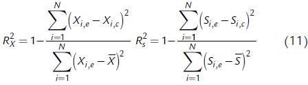 donde R2x corresponde al coeficiente de determinación para la biomasa, R2s corresponde al coeficiente de determinación para el sustrato, i es el índice correspondiente a cada muestra, N es el número de puntos experimentales, y