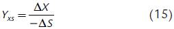 De acuerdo con la definición de rendimiento global de biomasa a partir de sustrato (Yxs ) reportada por Doran, (2013), el valor de este parámetro se puede calcular como el cociente entre la diferencia de concentración de biomasa y la diferencia de consumo de sustrato: