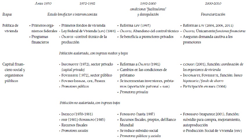 En esta perspectiva, y dentro del contexto latinoamericano, se ha prestado más atención a las distintas formas de producción de vivienda, ya sea por encargo, autoconstrucción, promoción capitalista o promoción pública (García, 1988; Jaramillo, 2009; Pradilla, 1976; Schteingart, 1982, 1989). Bajo ese enfoque es posible entender el papel, relaciones y estrategias de los actores en los mercados de suelo y de vivienda, los capitales que intervienen en la urbanización y los efectos de los cambios estructurales en el mercado inmobiliario.
