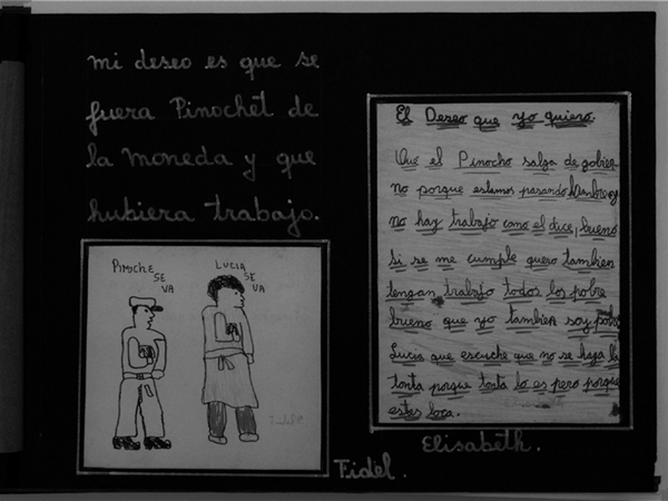 Los niños y niñas que vivieron el periodo de la dictadura fueron testigos de los elementos del paisaje que la sociedad de Chile no logró resolver en todos sus años de historia republicana (Castillo, 2015b). Es decir, en ese duro tránsito de pasar de colonia española a república en vías de desarrollo, el país no logró corregir desigualdades estructurales y estructurantes; de alguna manera, la dictadura militar de 1973 se instaló, a nivel discursivo, como una suerte de ejemplo brutal respecto a lo que puede llegar a suceder en caso que dicho ordenamiento pudiese llegar a conmoverse (Castillo, 2015b). Es así como algunos niños y niñas profundamente afectados por la pobreza y la desigualdad, partícipes por decisión de sus padres de un discurso con un marcado compromiso ideológico con la resistencia, narran a través de sus producciones los elementos que hemos de considerar como parte del paisaje, pues pese a que en muchas de esas producciones se identifique claramente al dictador Pinochet como el responsable de la situación, también es cierto que la historia económica de Chile tiene muchos otros indicadores que nos permiten afirmar que dicha situación de desigualdad precede y sucede al dictador.