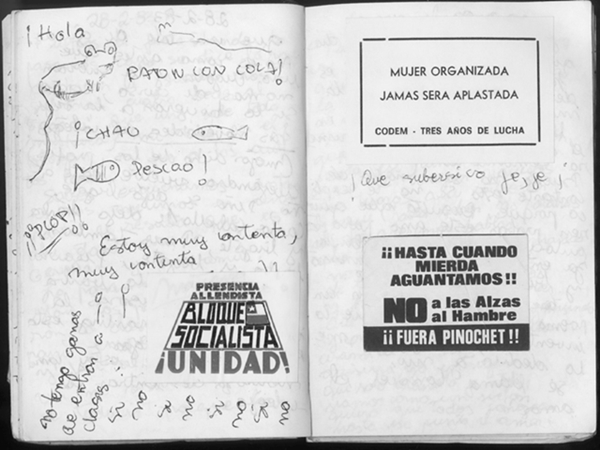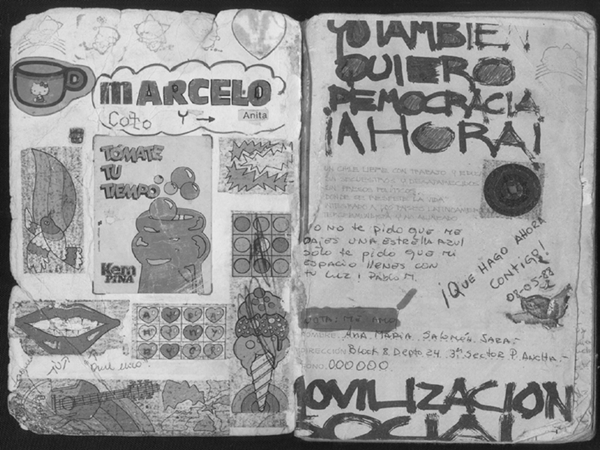 En ese sentido, los lugares infantiles están poblados de objetos con sentidos particulares e historizados, muchos de los cuales, pese a la importancia que los niños y niñas les asignaron en su momento, fueron perdidos u olvidados. Sin embargo, otros tantos siguen existiendo y aún conservan su estatuto sagrado. En el archivo de nuestro proyecto de investigación, muchos de esos objetos fueron entregados con la finalidad de ser inscritos en alguna parte de la historia. Es por ello que gran parte de lo que hemos recolectado puede interpretarse como un fragmento de un dialogo que estos niños y niñas sostenían con su entorno sociopolítico, con los hechos acontecidos durante la dictadura y que de algún modo fueron seleccionados como “ayuda-memoria”, o bien, como formas de inscribir aquello que por su carácter incomprensible u ominoso no pudo ser inscrito. En este sentido, nuevamente los diarios de vida son una vía privilegiada para acceder a esos fragmentos (véase imagen 11).