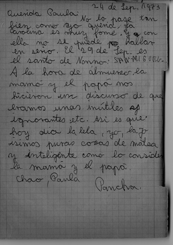 En este texto, Francisca deja claro que a sus once años identifica perfectamente el territorio familiar, y con ello, lo que se espera de las niñas en su condición de hijas y el momento en que se distancia de esos ideales, y sus actividades se vuelven inútiles y propias de una ignorante.