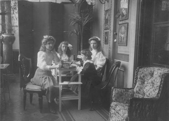 La nursery podía ser un espacio informal: por ejemplo, Flora Yañez y su hermano se habían apoderado de una pieza que no había sido ocupada por falta de muebles, y en la cual podían dibujar sobre el papel pintado, recibir sus juguetes de Navidad y dejar libre curso a su imaginación, al punto que este espacio constituyó “una existencia irreal” (Yáñez, 1947, pp. 21-22). Pero en la mayoría de las casas de elite, se trataba de un espacio formal, es decir, armado especialmente para los niños. No obstante, cabe recalcar que, si bien los niños podían disponer en él sus juguetes y sus materiales de estudio, rara vez era un espacio donde los pequeños podían expresarse libremente: al contrario, estaba concebido como un lugar donde el niño aprendía a comportarse con los adultos para cuando estuviera en su presencia. En este sentido, era descrito por la revista Familia (1913) como “el pequeño mundo de los niños”, siendo un espacio donde podían jugar pero donde también se les empezaba “a formar el carácter con que [tenían] que luchar en la vida”.10 De esta idea deriva, por ejemplo, la presencia de una sirvienta que vigilaba constantemente el comportamiento de Martina Barros y de su hermano, o la contratación de institutrices. A su vez, presuponía una preocupación por el entorno material, en primer lugar con la presencia de libros, por lo que el espacio infantil se perfila como un espacio de lectura, probablemente individual. Entre estos libros, se contaba con cuentos de hada, cuyos personajes podían incluso servir de decoración en las paredes o los cojines. De esta forma, se forma un lazo con el imaginario, incluso con lo mágico, pero también con lo pedagógico y lo moral, e incluso con una cuota de terrorífico, ya que de las situaciones descritas en los cuentos los niños van aprendiendo según su edad (Bettelheim, 1976). Cabe, sin embargo, recalcar que este lazo con la infancia mágica, en palabras de Eche Becchi, responde a “una serie de concepciones antropológicas y societarias no siempre manifiestas”, que conforman una representación del niño a la vez apartada e inserta en su contexto de producción (Becchi, 1998, p. 30). Para concluir, el artículo de 1913 recomendaba el uso de “colores suaves y bien armonizados” que “descansen los sentidos”, evitando de esta forma la sobreexcitación de los pequeños. Cuando los niños crecían y entraban paulatinamente en el mundo adulto, esta sala de juego se transformaba en salón, donde los jóvenes recibían sus amigos o podían dedicarse a actividades más tranquilas, como la costura, la lectura o los juegos de mesa.
