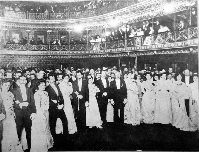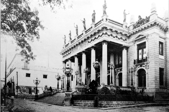 Por la noche tuvo lugar el acto social culminante del día: la inauguración del teatro Juárez, “el mejor y más elegante entre todos los de su género que existen en el país”, dijo El Mundo Ilustrado. Más de 30 años duró la construcción del edificio e intervinieron en sus trabajos José Noriega y Antonio Rivas Mercado, sucesivamente. De marcado estilo neoclásico, no se escatimó en los materiales ni en las distancias que hubo que salvar para llevarlos. “El teatro es hermosísimo: el pórtico consta de una soberbia escalinata”, a cuyos lados “se ven dos candelabros de hierro” y un león vaciado en bronce. En lo alto, ocho estatuas de tres y medio metros de altura de las musas principales del Parnaso. Entre todo destacaba el “foyer”, “que protege una airosa cúpula de hierro y cristales” (véanse imágenes 10 y 11).41