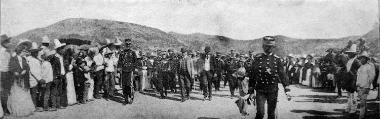 El semanario tenía razón, es difícil encontrar algún antecedente de “derroche” y una visita presidencial a un estado del país tan vistosa como la que entonces ocurrió en Guanajuato. No contamos aún con una relación exhaustiva de las giras y/o viajes de Porfirio Díaz por el país, pero al final del siglo XIX había hecho al menos cuatro importantes. La primera fue en enero de 1896, para inspeccionar trabajos del ferrocarril de Tehuantepec. En diciembre del mismo año se reunió en Guadalajara con la elite regional (los eventos no fueron cubiertos por El Mundo Ilustrado). En 1898 emprendió un viaje ambicioso para visitar Tampico y San Luis Potosí, y en otra ocasión estuvo en Monterrey. Como siempre, aprovechó para ser saludado y celebrado por miles de personas en las estaciones por las que pasó. De ambas giras hubo algunas fotografías en El Mundo Ilustrado, pero ninguna en que apareciera el presidente en actividad, lo que revela la menor disponibilidad económica y las mayores dificultades técnicas que existían para el traslado de reporteros, equipo, negativos y para la reproducción de imágenes.18