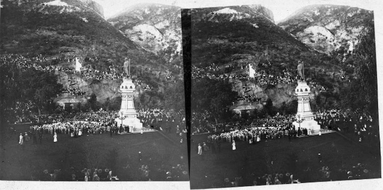 Terminadas las regatas una multitud se congregó en las inmediaciones de la presa, sobre el jardín de las Acacias, para develar un monumento a Hidalgo: sólo de la comitiva presidencial había más de 400 personas, además de 1 500 niños y niñas de escuelas públicas que cantaron el himno nacional, sin contar a los espectadores apostados en las laderas de los cerros vecinos;35 con exageración, el Diario del Hogar dijo que hubo en el acto “no menos de quince mil personas” (véase imagen 9).36