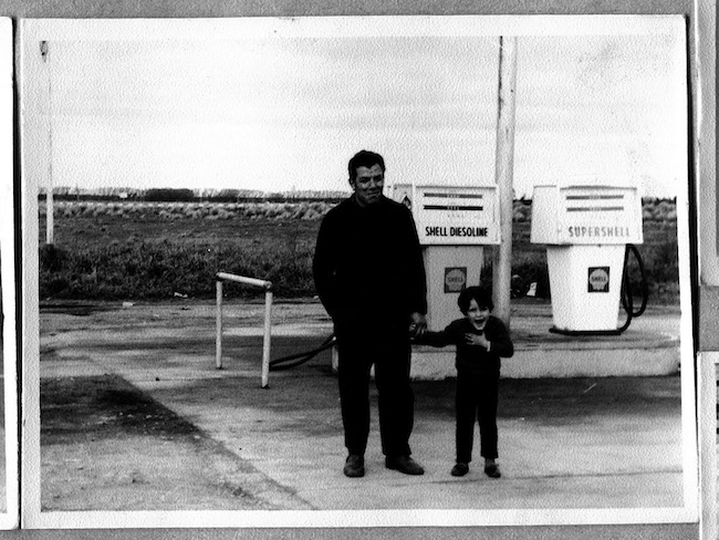 Ahora, si bien en la narración visual las tomas en el ámbito doméstico son escasísimas, es en él en donde Sara tiende a mostrarse en su papel de madre. Estos pocos registros permiten, nuevamente, dar cuenta de la compleja relación entre prácticas de representación, espacios representacionales y género. Es que en este punto, las fotografías seleccionadas parecen conformarse a los roles genéricos de padre y madre imperantes. Así, por ejemplo, si en el caso de José la toma remite al ideal de padre proveedor y protector, en donde el plano amplio deja ver que padre e hija son capturados en la gasolinera donde trabajaba, y la toma de cuerpo entero proyecta a la vez distancia (la diferencia de altura entre la pequeña y su padre) y protección, puesto que es él quien la toma de la mano (véase imagen 10). En el caso de Sara, la escena registrada en el espacio doméstico remite al ideal maternal de cuidado, afecto y contención. El plano corto refuerza estos sentidos, proyectando la relación en términos de proximidad e intimidad (véase imagen 11).