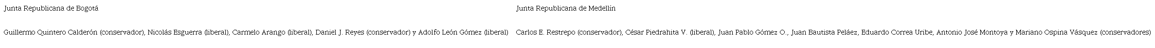 Un grupo muy numeroso de ciudadanos residentes en esta capital de origen colombiano, nacidos en diversas localidades de la República y de filiación política diversa, que han hecho parte de los antiguos partidos Conservador, Liberal y Nacionalista, nos ha hecho del modo más espontáneo, el muy alto honor de designarnos para constituir una junta que nosotros le llamaremos republicana, destinada a servir de centro para los trabajos electorales previos o preparatorios de las elecciones de los Senadores y Representantes que habrá de formar el próximo Congreso Constitucional.15