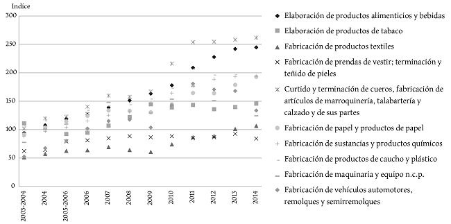 Las ramas de la industria con representación en el Consejo Directivo de la UIA experimentaron un mejoramiento de su performance durante el periodo de la postconvertibilidad (véase gráfica 1). Este dato permite pensar en una acción impulsada por una expansión generalizada.