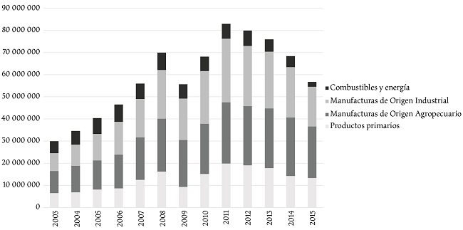 Sin embargo, el crecimiento del producto no implica que se haya modificado la competitividad de la industria que opera en Argentina. De hecho, si ponderamos a las exportaciones como indicadoras de la capacidad de cada industria para competir en el exterior, concluimos que persiste la tendencia de que las mercancías de origen industrial son muy inferiores a las de origen agropecuario (véase gráfica 2).