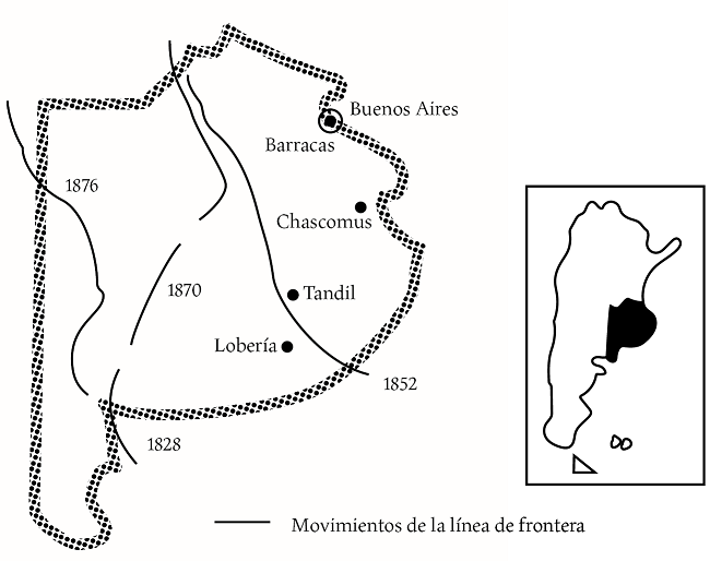 El mismo Rosas recorre en 183312 el territorio que luego conformaría la provincia bonaerense negociando con algunas parcialidades (véanse Jong, 2016; Ratto, 2003) y expulsando a otras. Detrás del avance del ejército, unos pocos criollos se adueñaron de terrenos de cinco leguas cuadradas, apenas delimitados con mojones de piedra rápidamente tapados por los pastizales. Esa distensión, la ocupación estacional de criollos pobres en épocas de juntada de caballos o vacas, como también de doma, no asfixió inicialmente a las parcialidades indígenas ni a los criollos, que podían cazar fauna silvestre o tomar ganado por su cuenta asentándose en lo que se denominó Tierra Adentro, el amplio espacio ubicado más allá de la frontera. Ello perduró aún con el aumento de población extranjera y provinciana en proporciones modestas hasta la década de 1860, agravándose el paisaje socioeconómico recién en la década siguiente. La tensión entre criollos, comparable al heterogéneo colectivo plebeyo romano, se inicia con levas que arrancaban a los criollos humildes de sus familias para cubrir la línea de frontera durante periodos mayores a cinco años, generalmente sin pagas ni relevos.