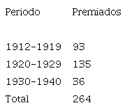 Los premios comenzaron a ser entregados de forma regular a partir de 1912, y la cantidad de personas que los recibieron se mantuvo constante al menos hasta 1930. Esta información la podemos ver reflejada en el cuadro 1.
