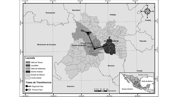 El Estado de México -además de experimentar crecimiento industrial y demográfico en los entonces municipios aledaños al DF- fungió como proveedor de agua para la capital del país, prueba de ello son las transferencias de agua realizadas entre 1940-1980. Así, el DF incrementó su abastecimiento hídrico gracias a los recursos de los valles de Toluca e Ixtlahuaca (véase mapa 2).