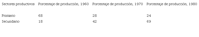 Como manifestación de lo anterior, también se modificó la ocupación territorial, ya que la población se concentró en algunos espacios. Así, la población económicamente activa creció en el sector industrial, así como en el de comercio y servicios, pero disminuyó en el agropecuario. En este sentido puede mencionarse el cambio en la producción de los sectores primario y secundario de los municipios que conforman el corredor industrial (Lerma, Metepec, Tenango del Valle, Toluca y San Mateo Atenco), que entre 1960 y 1980 experimentaron un decrecimiento en el porcentaje de producción del sector primario, pero un aumento en el sector secundario (véase cuadro 1).