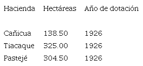 La gestión del agua orientada a favorecer el desarrollo industrial de la región capital no fue la única decisión del gobierno mexicano que encendió las disputas y conflictos por el líquido en Jocotitlán antes de 1940, lo mismo sucedió con el reparto de tierras a los diferentes grupos de campesinos que las solicitaron al amparo del reparto agrario. En el caso de la Hacienda Pastejé, por tener una larga extensión territorial de 3 071 hectáreas “fue fraccionada entre 1924 y 1937 para la dotación de cinco pueblos, San Pedro de los Baños, San Martín Ixtlahuaca, Los Reyes, San Juan y San Agustín y Santo Domingo de Guzmán. Fue afectada con 1893 ha de su extensión territorial, lo que significó que perdiera el 62% de la antigua propiedad” (Salinas, 2000, p. 119). Además, a Los Reyes se le dotó de tierras de otras tres haciendas (véase cuadro 2).