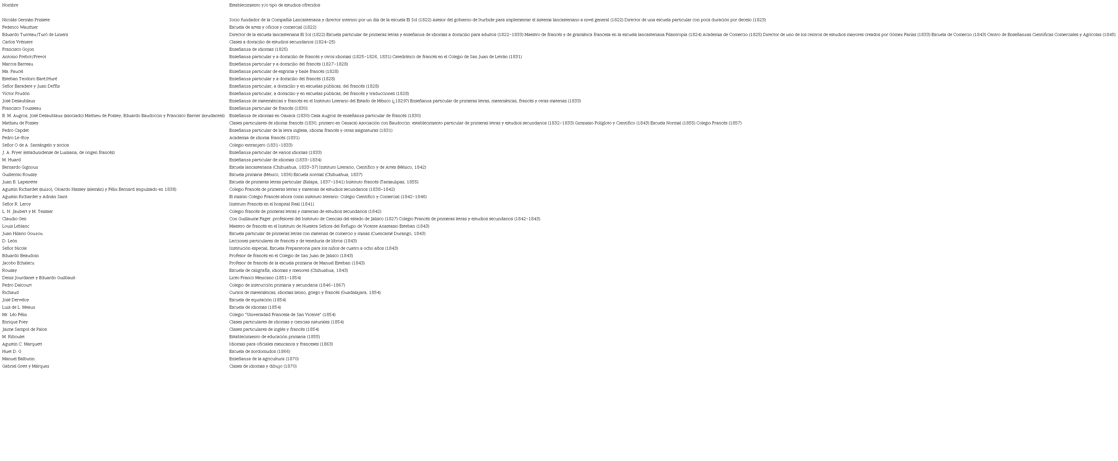 French Elementary and Secondary School Teachers in Mexico City, 1822-1870