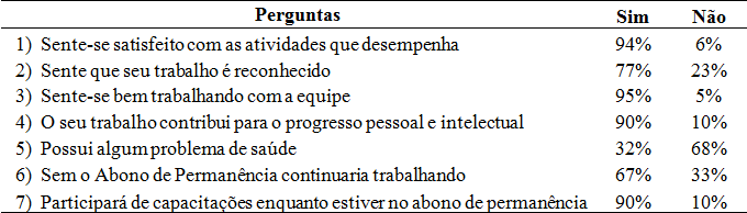 De certo modo, os resultados da pesquisa mostram que os servidores que estão recebendo o Abono de Permanência o fazem não só visando acréscimo pecuniário provisório, mas porque apesar de já terem muitos anos de efetivo exercício na universidade, não estão se sentindo velhos, desmotivados ou cansados do trabalho que realizam. Pretendem continuar se capacitando e efetivamente contribuindo com o desenvolvimento da organização em que estão inseridos. Isto confirma o que Ferreira et al. (2015) salientam da importância das ações de treinamento e desenvolvimento na Gestão de Pessoas que provoca mudanças nos resultados e sustentabilidade organizacional.