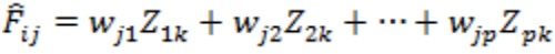 (2)Em que (Z1k Z2k... Zpk), são os valores observados das variáveis padronizadas Zi para o k-ésimo elemento amostral e os coeficientes wip i=1, 2, ...p são os pesos de ponderação de cada variável Zi no fator Fj.