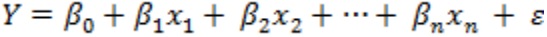 (3)Em que: Y é a variável dependente; x1, x2, ... xn são variáveis independentes; β0, β1, β2, ..., βn são os parâmetros da regressão; e ε é o termo de erro ou o resíduo da regressão.