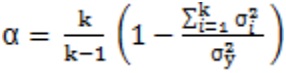 (4)Em que: k é o número de itens do questionário; σi2 é a variância do item i; e σy2 é a variância da escala total somada.
