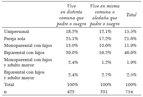 La encuesta realizada confirma esta tendencia. En ella se encontró que un significativo 44% del total de gentrificadores vive en la misma comuna que sus suegros y padres (331 hogares sobre 754 hogares gentrificadores en el cuadro 2). Esta retención es especialmente clara entre familias biparentales con hijos pequeños, cuando alcanza 56%.