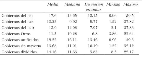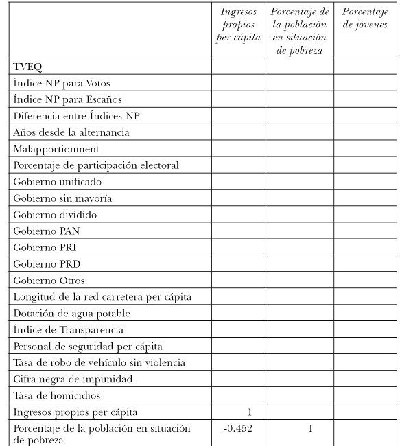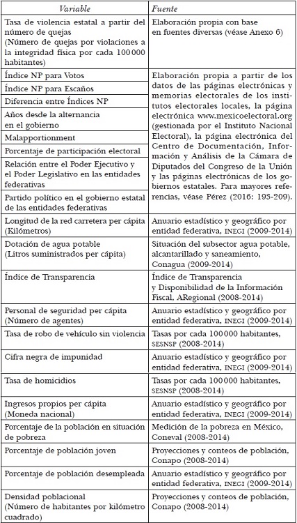 Para concluir, vale la pena subrayar que los límites no sólo refieren a la variable dependiente. Aunque los institutos electorales locales, el Congreso de la Unión y los congresos locales fueron suficientes para recopilar la información electoral y de distribución del poder público pertinente, mucha información relevante para medir las capacidades estatales no está disponible para los años de estudio o las unidades de análisis, particularmente los datos sobre corrupción o la evaluación de los servicios públicos.