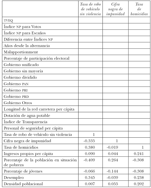 Por su parte, el grupo de resultados utilizó dos variables. Sobre la primera, la cifra negra de impunidad refleja la incapacidad del Estado para garantizar el orden interior y la propiedad de sus habitantes, así como mayor propensión o tolerancia a que agentes externos sobrepasen el monopolio legítimo de la violencia estatal y vulneren a sus habitantes. No obstante, la impunidad no fue una variable determinante y no correspondió a las expectativas teóricas.12