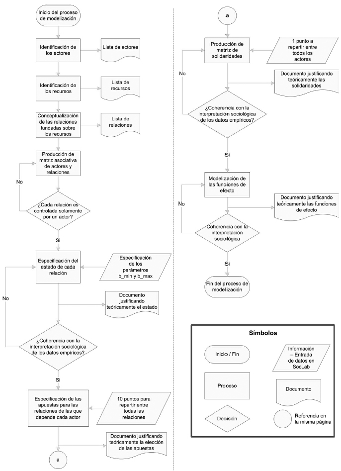A continuación se presenta la metodología de modelización de organizaciones sociales con SocLab a través de un diagrama de flujo (figura 6). Después se ilustra paso a paso la implementación computacional del modelo teórico en la plataforma SocLab.6