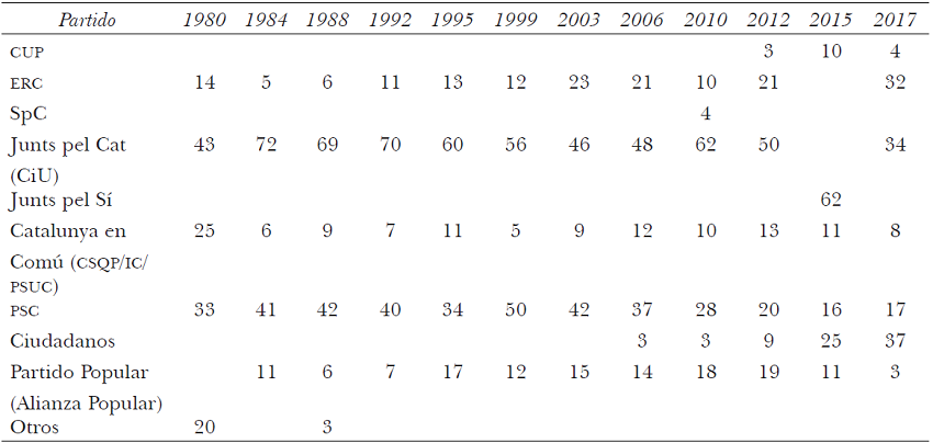 El final del proceso electoral del 21-D tiene plazos establecidos y dos posibles soluciones: que se forme un gobierno independentista o que se convoque a nuevas elecciones. Como podemos ver en la Tabla 1, la suma de escaños del bloque no nacionalista es insuficiente. Sobre el final del proceso de independencia no hay plazos y las salidas pueden ser muchas, desde una reforma constitucional que reencauce la relación a un enquistamiento del conflicto, máxime teniendo en cuenta que el bloque independentista ha logrado la movilización de 2 079 340 votantes frente a 1 902 061 del no nacionalista. Pero el análisis de esta coyuntura y del comportamiento que han mostrado los actores en el proceso puede ofrecer pistas para intentar imaginar algo sobre su final, y sacar algunas enseñanzas no demasiado originales pero útiles.