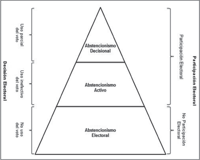 Este concepto coloca al abstencionismo electoral como una categoría negativa (López, 2013) para la democracia representativa (Thompson, 2003; Tuesta, 2003), que en términos prácticos opera como “una cifra difundida por un organismo electoral oficial; un dato estadístico que busca diferenciar claramente entre aquellos ciudadanos que votaron y los que no lo hicieron” (Franco-Cuervo y Flórez, 2009: 89) en una elección; en ese sentido, el abstencionismo es un indicador de legitimidad que expresa ausencia de participación en el acto de votar, cuyas categorías tradicionalmente se han dividido en abstencionismo electoral como ausencia de participación, y abstencionismo activo como sumatoria de votos nulos y blancos que expresan rechazo al sistema político o fallas involuntarias en el momento de sufragar, en tanto que se participa pero se vota de manera inefectiva (Thompson, 2007).