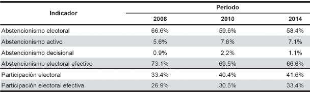 Por eso, el “abstencionismo decisional […] se puede definir como un indicador de ausencia de decisión electoral, que mide el porcentaje de no utilización de la totalidad del voto ordinal de los ciudadanos, que participando electoralmente si manifiestan sus preferencias por un partido político y/o un candidato de elección popular” (Soto y Giraldo, 2016: 251).