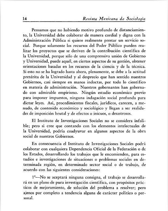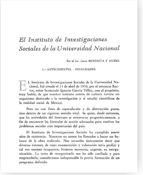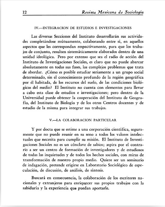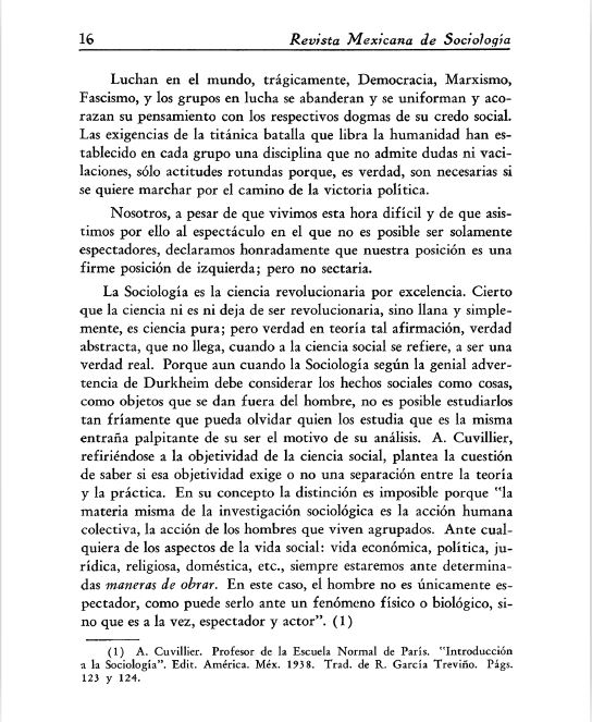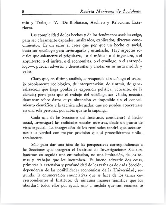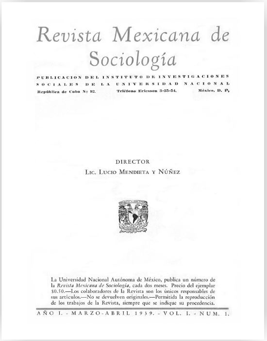 Reproducción facsimilar del primer artículo publicado en la RMS en 1939 Revista Mexicana de Sociología