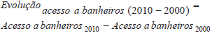 O acesso a banheiros em determinado ano (2000 ou 2010) foi calculado conforme a equação3 abaixo.