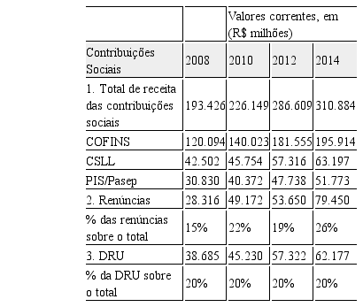 Essas desonerações da folha de salário, aliadas às renuncias fiscais, beneficiam amplamente o capital, e se revertem em perda de direitos para a classe trabalhadora, devido a quantidade de receitas que deixam de ser arrecadadas e transformadas em benefícios sociais. No ano de 2014 o orçamento da seguridade social deixou de arrecadar R$ 79,4 bilhões, devido à renúncia fiscal das contribuições sociais PIS, COFINS e CSLL, ou seja, o equivalente a 26% do total arrecadado por estas contribuições sociais, conforme apontado na Tabela 3, elaborada com base em dados da ANFIP (2016).