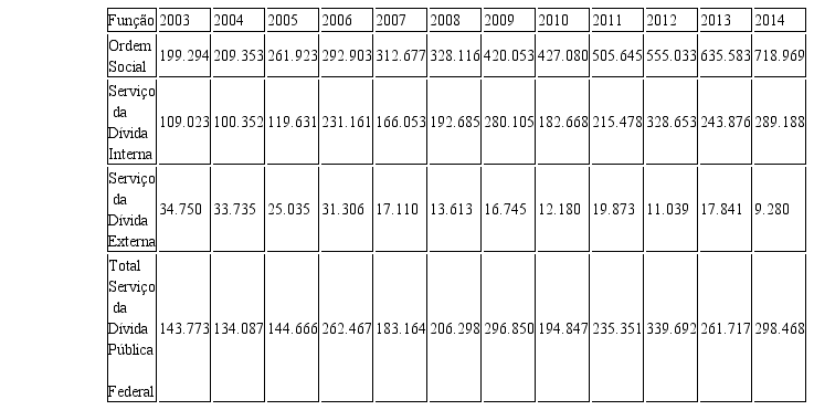 Entretanto, apenas, parte do gasto não financeiro foi destinada à reprodução da força de trabalho, isto é, a realização de gastos na ordem social brasileira, enquanto a totalidade dos gastos financeiros foi distribuída entre os gastos com os serviços da dívida pública interna e externa.
