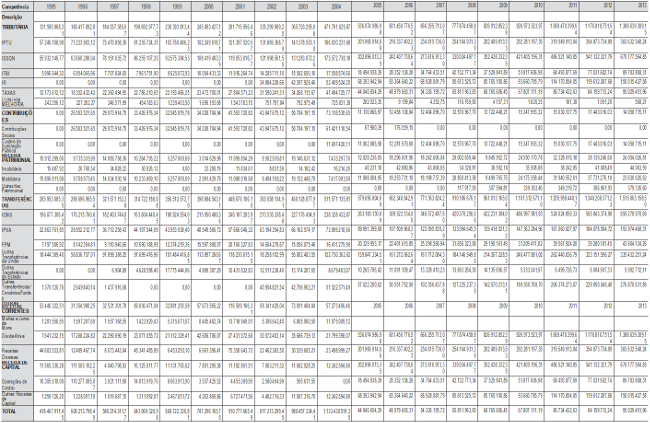 Tabela 4 - Evolução da arrecadação tributária do município de Campinas - SP (1995-2013)