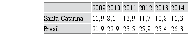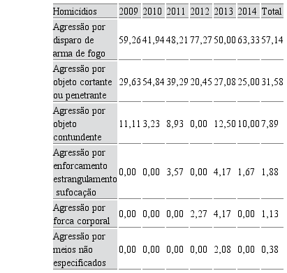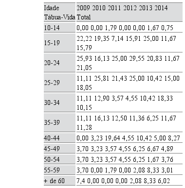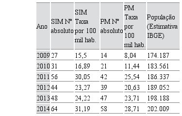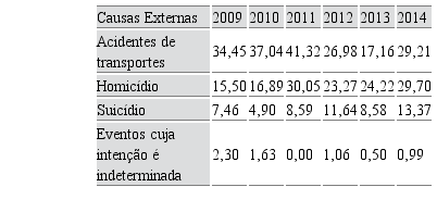 A Tabela 3 discrimina as taxas referentes às causas externas, que se destacam entre 2009 e 2014.
