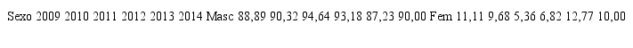 Quando centrada a análise na porcentagem por sexo, no período de 2009 a 2014, percebemos que a grande maioria de mortos é composta pelo sexo masculino e varia entre a taxa de 87,23 a 94,64, como se pode visualizar na Tabela 7.