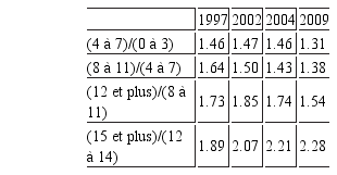 De cet effet de ciseau, en période de plein emploi, il en résulté un resserrement des inégalités salariales selon le nombre d’années suivis à l’école (Tableau 1), les jeunes qualifiés à la recherche d’un emploi ne trouvant pas un travail à la hauteur de leur qualification (déclassement et désaffiliation) de nature à provoquer un profond sentiment de ressentiment, resserrement accentué par la hausse très importante du salaire minimum qui a favorisé surtout les salariés non qualifiés ou peu qualifiés (Tableau 2).