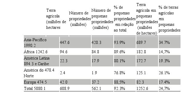 A pesquisa realizada pela GRAIN apontou ainda que as pequenas propriedades pertencentes aos pequenos agricultores e indígenas estão se tornando cada vez menores. É acelerado o processo de extinção de pequenas propriedades na medida em que o agronegócio cresce, até mesmo nos países em que a reforma agrária foi implementada. Na América Latina e Caribe 80.1% do total de propriedades são consideradas pequenas propriedades que estão na mão de pequenos agricultores e/ou indígenas, contudo ocupam apenas 19,3% de toda terra agrícola no continente. Em atenção ao proposto neste artigo destacamos os dados sobre a distribuição de terras nos quatro principais países latino-americanos produtores de soja - Argentina, Brasil, Bolívia e Paraguai (Tabela 2).