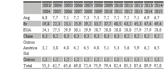 Tanto os EUA quanto a Argentina apresentam perda de fatia desse mercado conforme pode ser observado na Tabela 3.