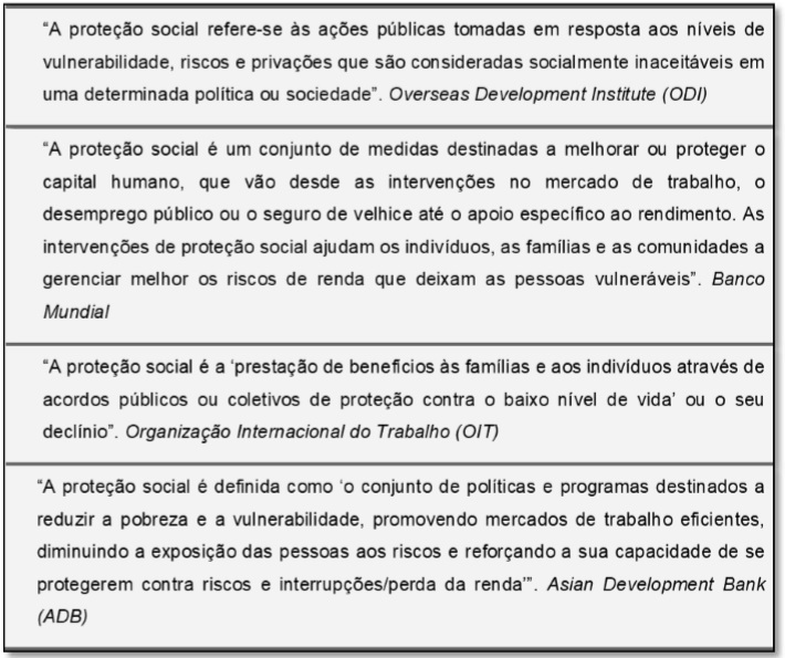 Definições de proteção social de agências internacionais