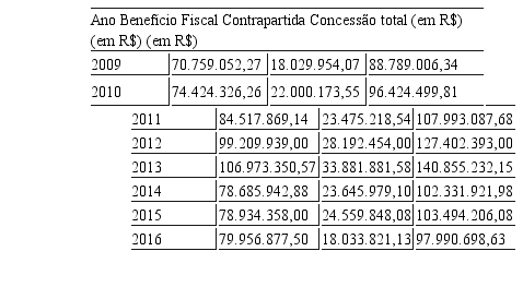 A legislação do Rio de Janeiro reforça essa premissa, ao se valer do dispositivo da Declaração de Intenção de Patrocínio (DIP), que se refere a um documento no qual o patrocinador “[...] formaliza seu compromisso de apoiar o projeto cultural e solicita concessão de benefício fiscal”, além da “[...] comprovação de captação mínima equivalente a 40% do valor solicitado à Lei de Incentivo.” (RIO DE JANEIRO, 2013, p. 7). Em termos mais técnicos, o incentivo fiscal de que trata a legislação do Rio de Janeiro, corresponde a 4% do ICMS, a recolher em cada período para doações ou patrocínio de produções culturais de autores e intérpretes nacionais e 1% para patrocínio de produções culturais estrangeiras5. A Tabela 1 traz os valores concedidos na forma de benefício ao setor privado, pelo estado do Rio de Janeiro, em termos de renúncia fiscal.